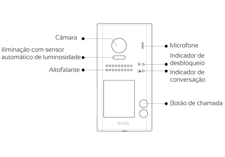 Dotada de iluminação para visão em condições de baixa luminosidade e amplo ângulo de visão para maior proteção contra intrusos.