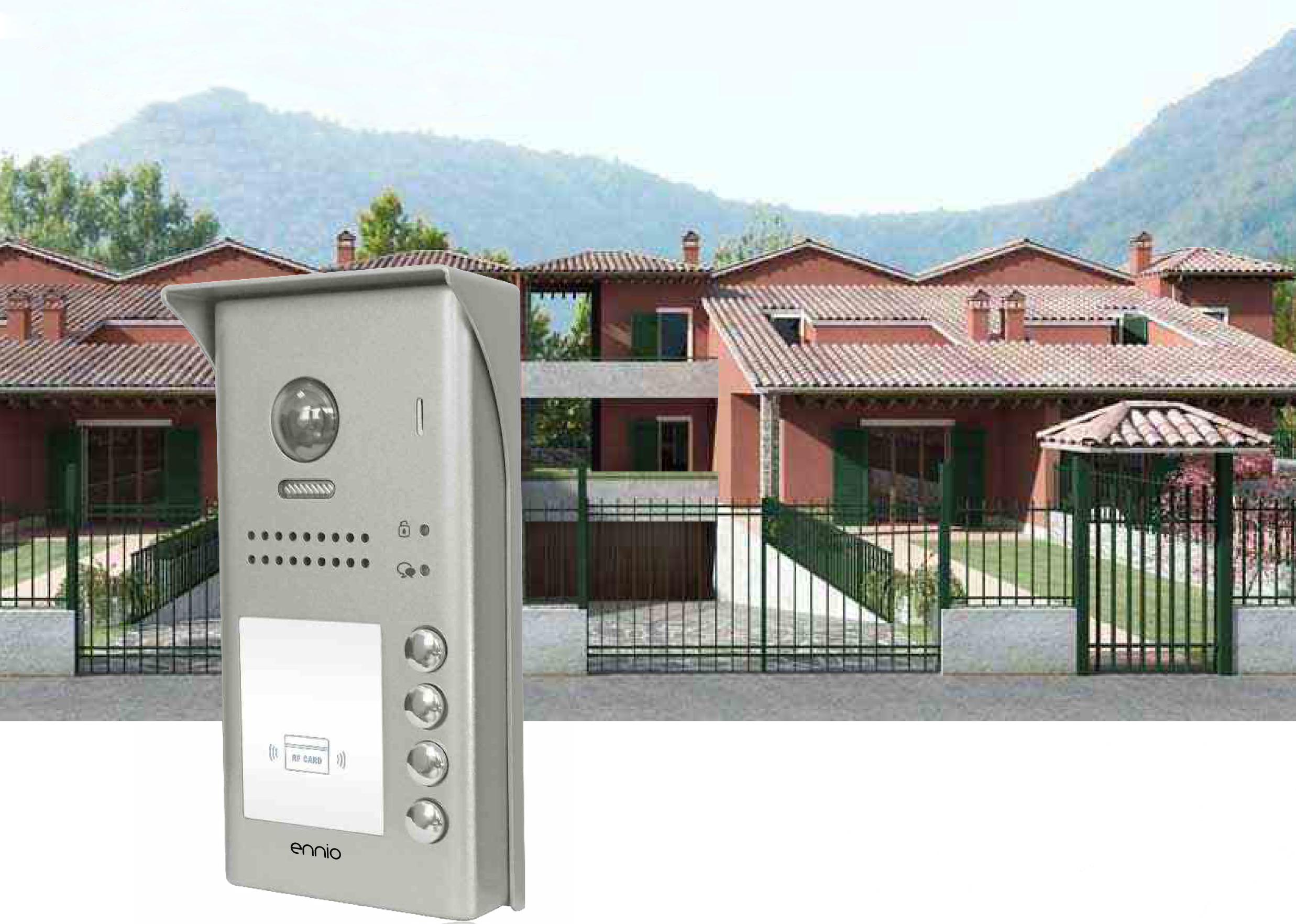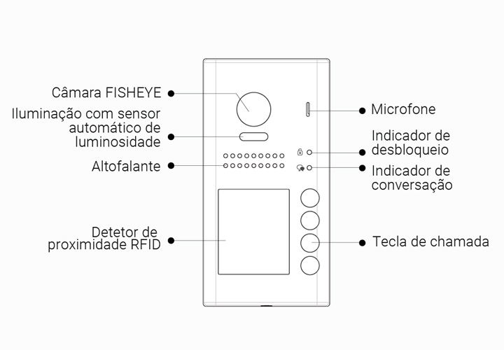 Sistema 2 fios, com câmara panorâmica e controlo de acessos RFID integrado