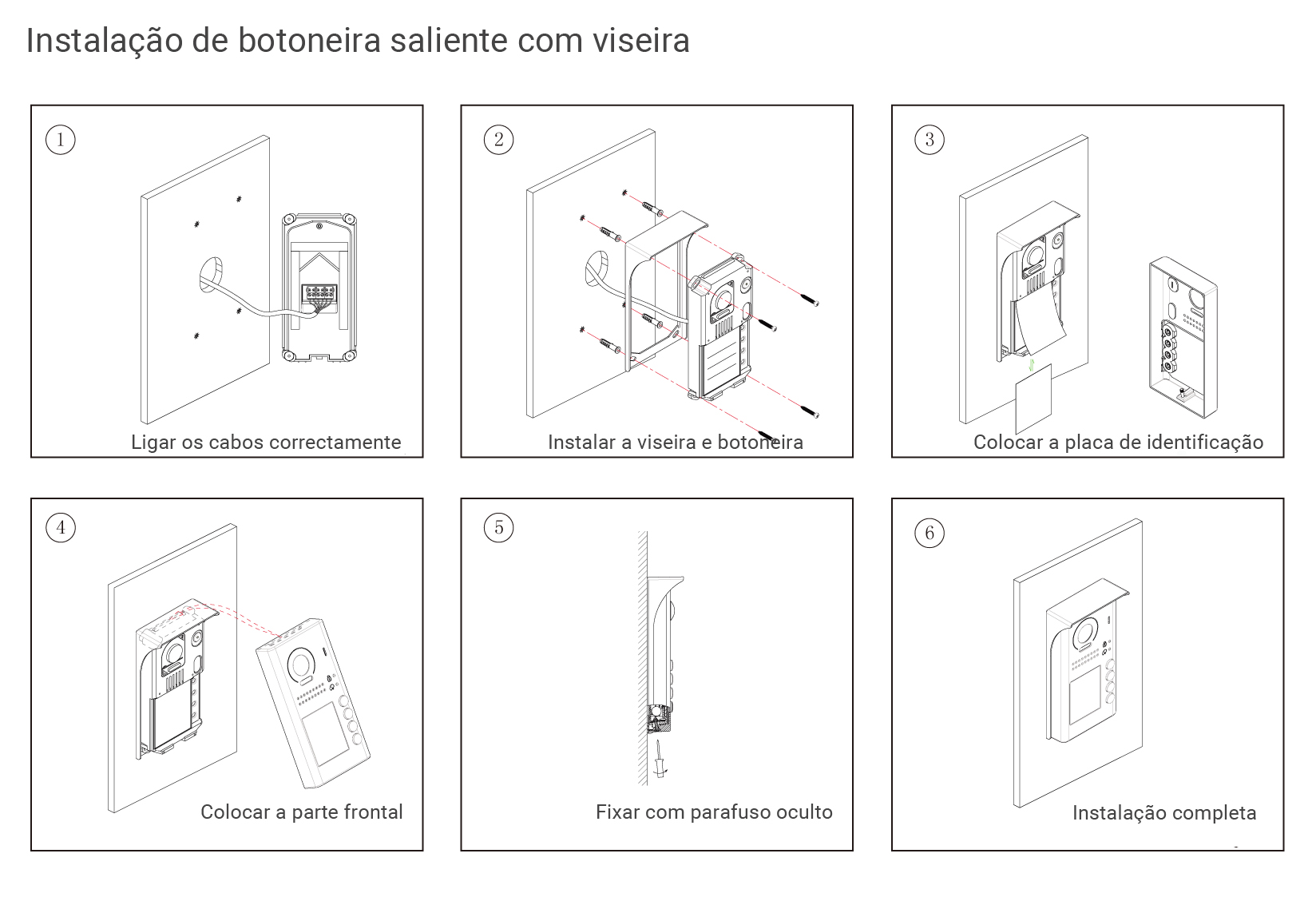 Viseira contra intempéries para proteger a botoneira exterior. Proporciona proteção adicional durante condições climáticas extremas ou quando a botoneira é instalada em local exposto. Encaixa-se com segurança atrás da botoneira. Fácil de encaixar no momento da instalação do kit. Espessura 1 mm.