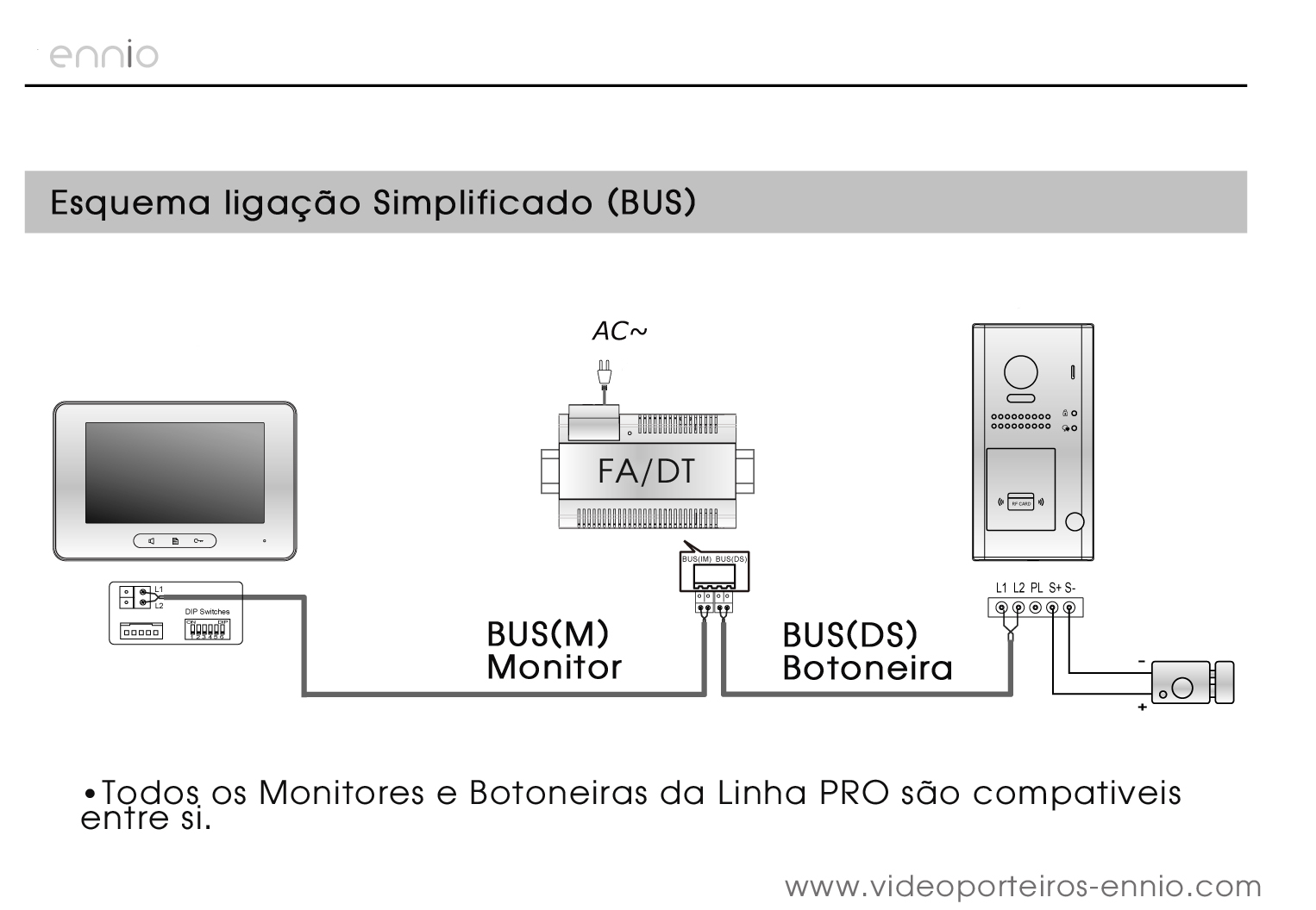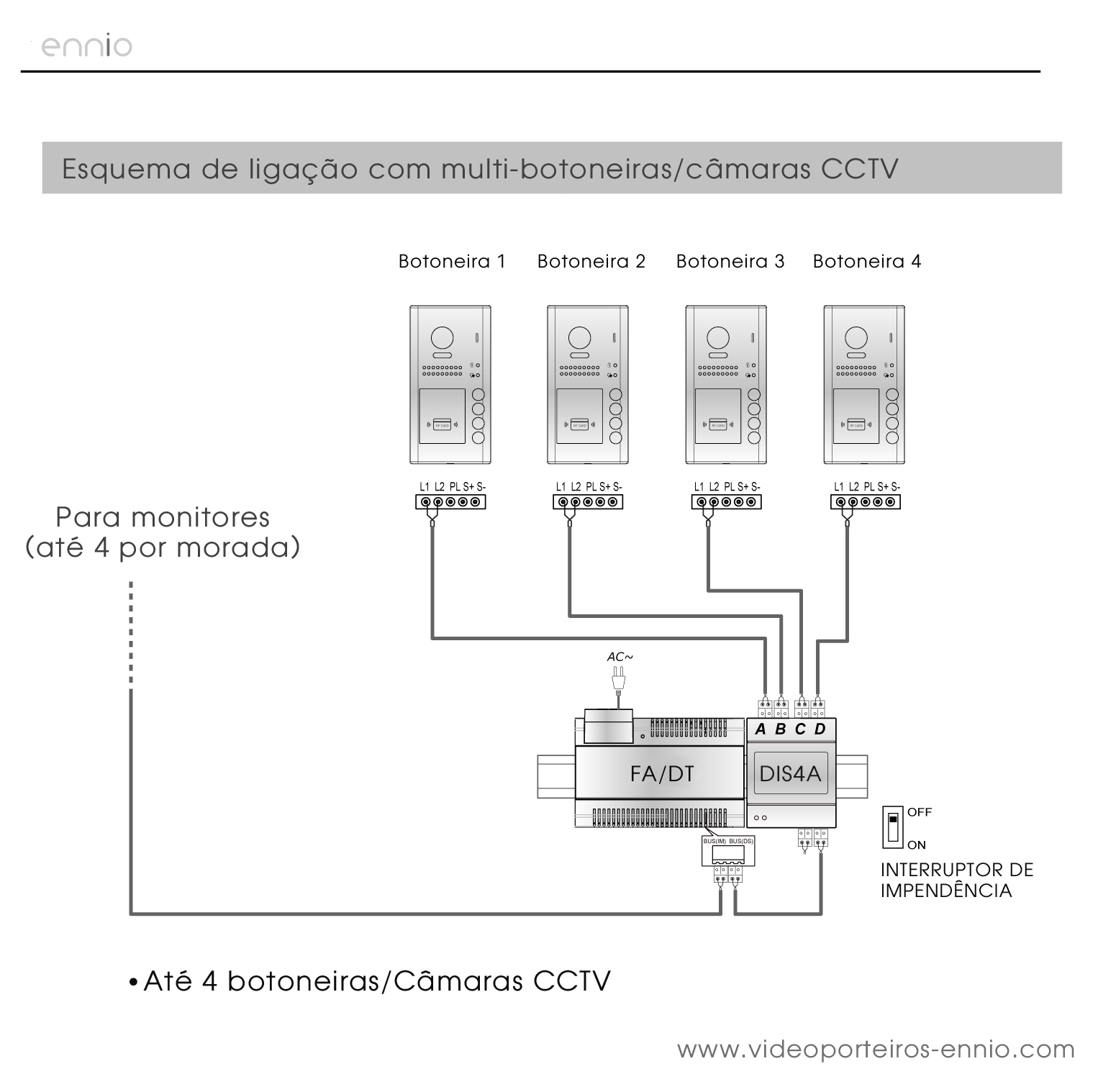 Distância máxima entre a botoneira e o último monitor: Até 200m com cabo par trançado 2x1mm