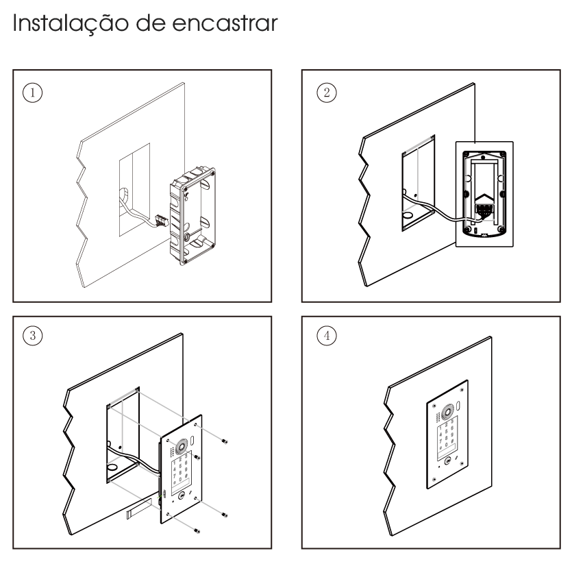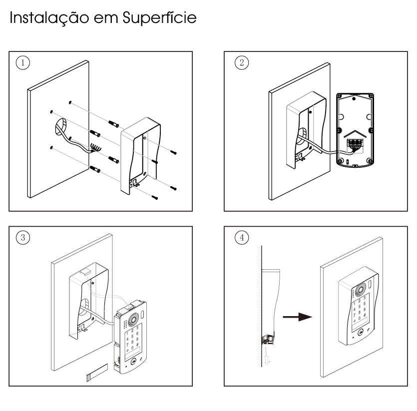 Todos os equipamentos necessários para a instalação de um vídeo porteiro incluídos na mesma caixa.
