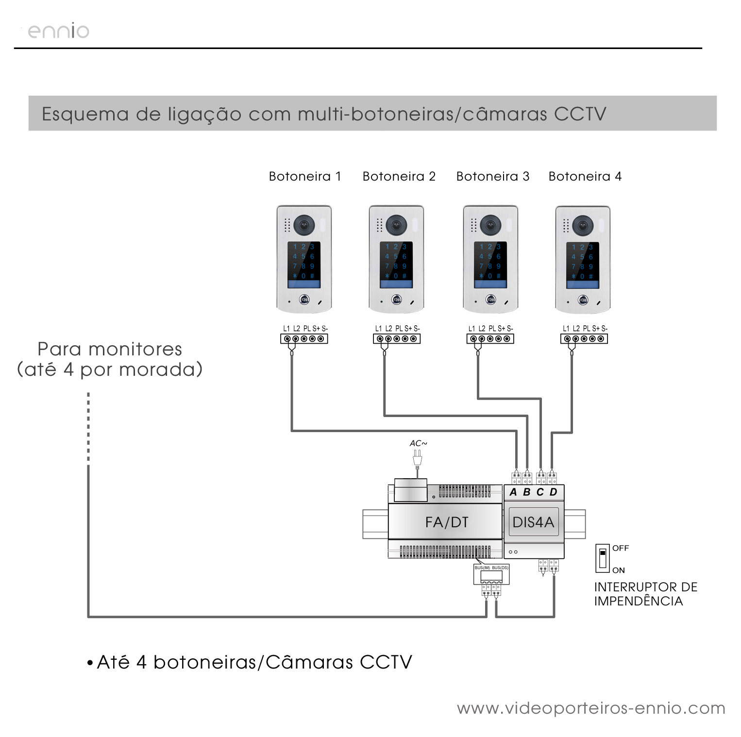 Distância máxima entre a botoneira e o último monitor: Até 200m com cabo par trançado 2x1mm